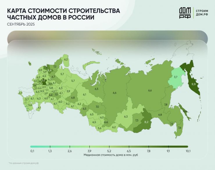 Самые высокие затраты на индивидуальное жилищное строительство (ИЖС) зафиксированы на Дальнем Востоке – около 10 миллионов рублей. При этом в Магаданской области дом можно построить значительно дешевле – за 3,7 миллиона рублей.