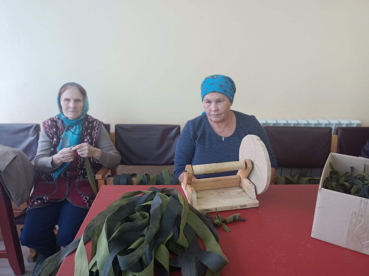 Конечно, изготавливать большие партии нашлемников, нательного белья или масксетей волонтёрам помогает автоматизация производственных процессов. В Кошноруях Канашского округа, к примеру, местный Кулибин А. Якимов создал аппарат для намотки лент. У группы «Добрые сердца», объединившей жителей деревень Хирпоси и Рунги Вурнарского округа, тоже есть свой мастер на все руки. Валерий Филиппов изобрёл специальный станок для нарезки спандбонда. «Раскраивать материал на узкие ленточки — одна из самых трудоёмких задач. А тут за короткое время мы сделали заготовки для масксетей сразу из четырёх рулонов спандбонда. Сэкономлено драгоценное время и силы, и значит, мы сможем плести ещё быстрее и больше», — привели объяснения неравнодушных сельчан в госпаблике Вурнарского центра соцобслуживания.