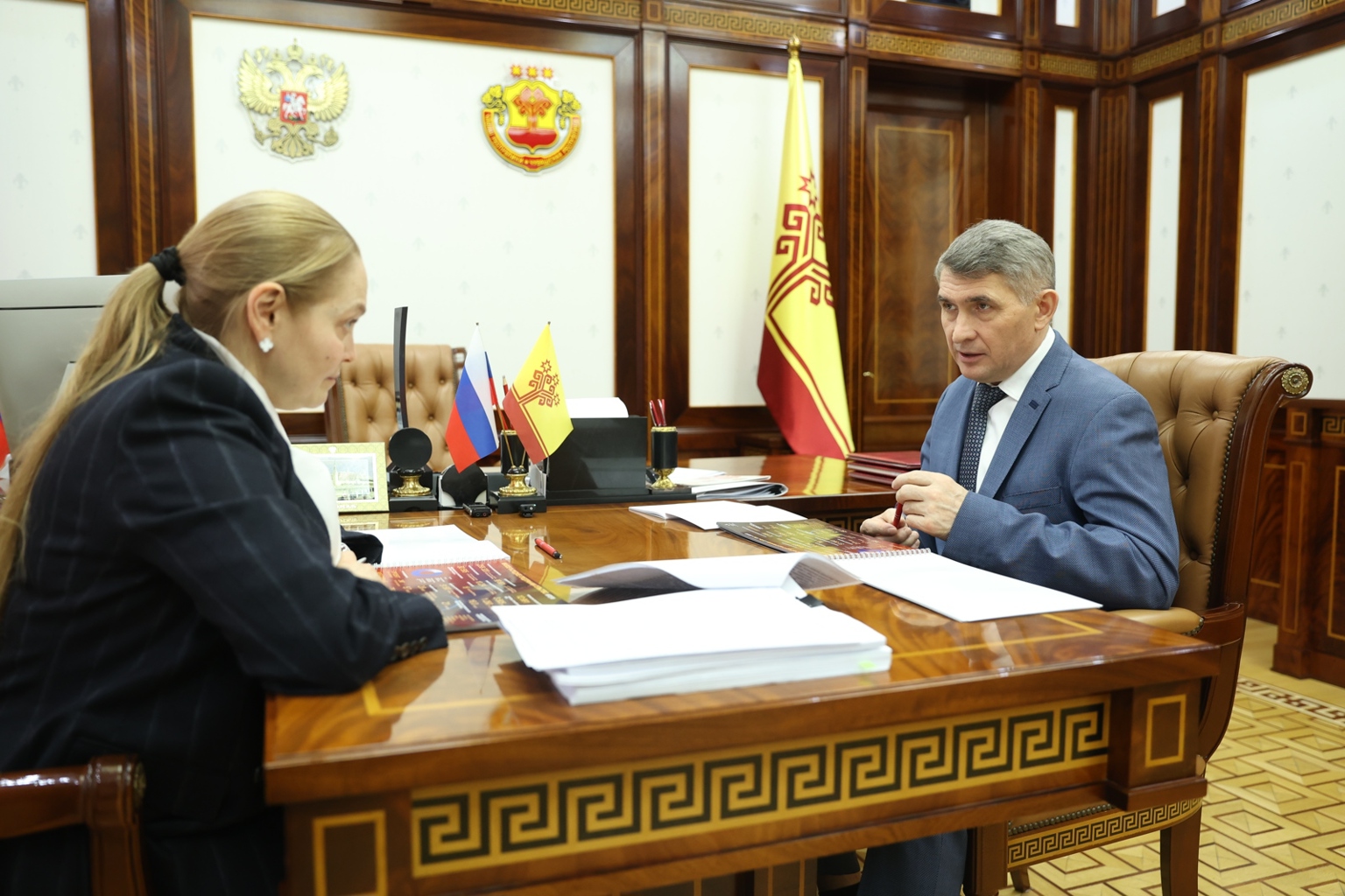 На рабочей встрече Главы Чувашии Олега Николаева и министра экономического развития и имущественных отношений Ларисы Рафиковой обсудили итоги 2025 года и планы до 2030 года.