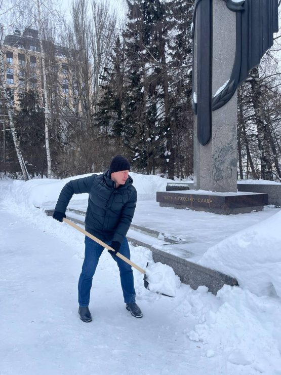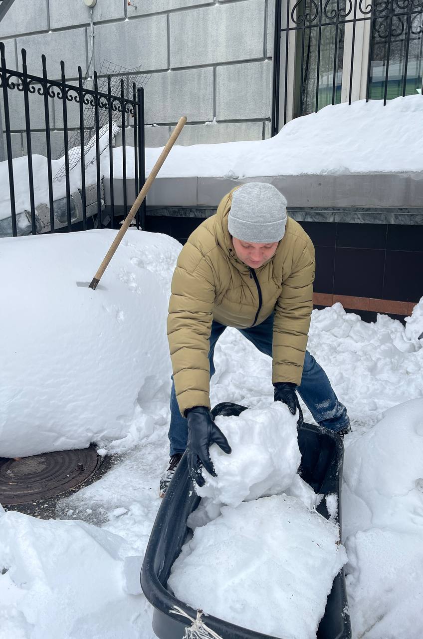 Работники ведомства не стали ждать официального старта зимнего субботника, назначенного на 21 февраля, и взялись за расчистку снега уже в пятницу.