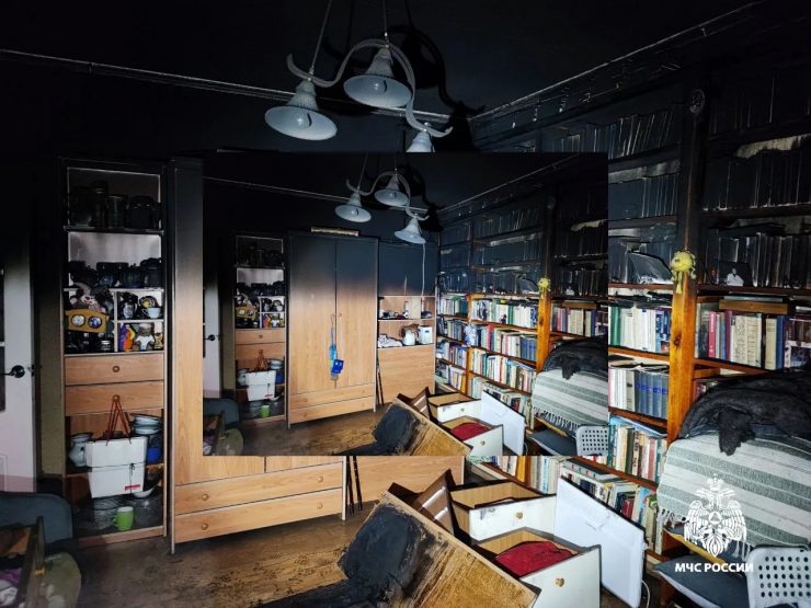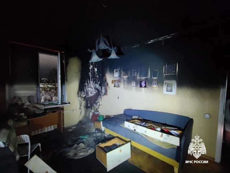 В тот же вечер загорелась квартира на 2 этаже дома 11А по проспекту Ленина (на снимках последствия).