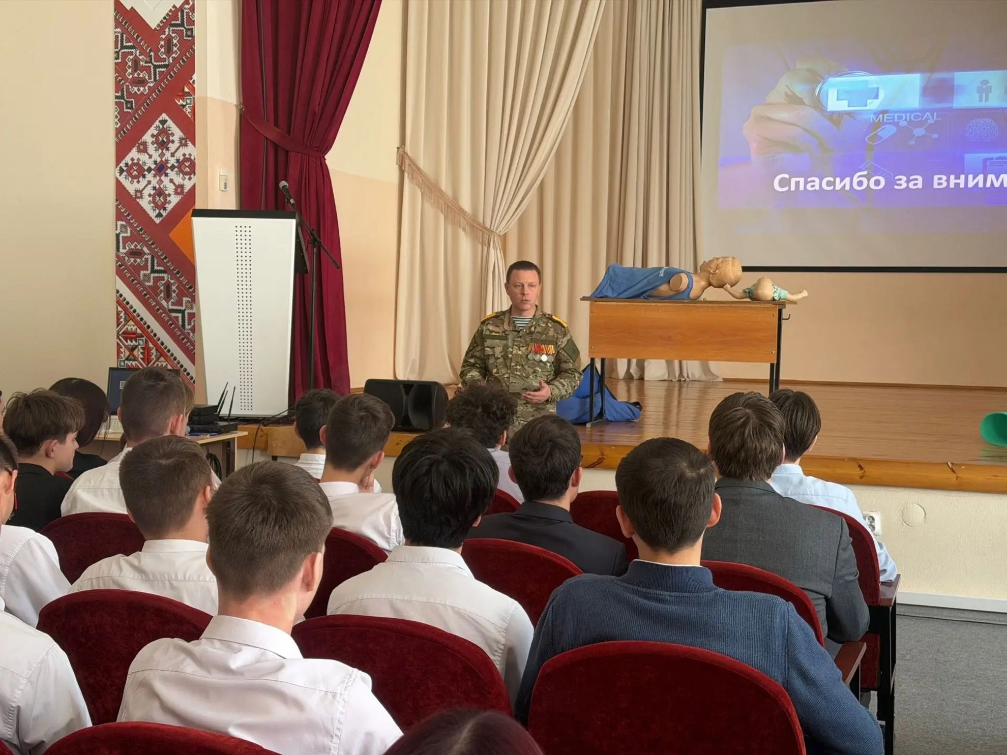 Цивильские школьники освоили алгоритм действий при потере сознания: проверку дыхания и безопасное положение на боку. Но знать теорию мало — куда важнее услышать реальную историю. Своим опытом поделился участник СВО Алексей Данилов. Он рассказал, как был ранен и остался жив только потому, что товарищ вовремя оказал ему первую медицинскую помощь. Для школьников эта встреча стала настоящим уроком мужества.