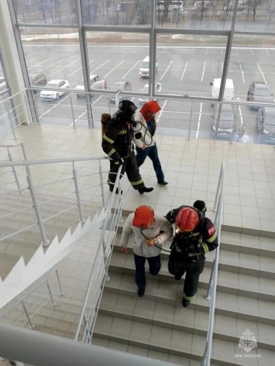Пожарно-тактические учения прошли на прошлой неделе. По их замыслу, короткое замыкание потолочного светильника в коридоре на третьем этаже спровоцировало быстрое распространение едкого дыма. Пока пожарные расчёты не прибыли, 50 человек успели покинуть здание. Однако четверо оказались отрезаны густым дымом.